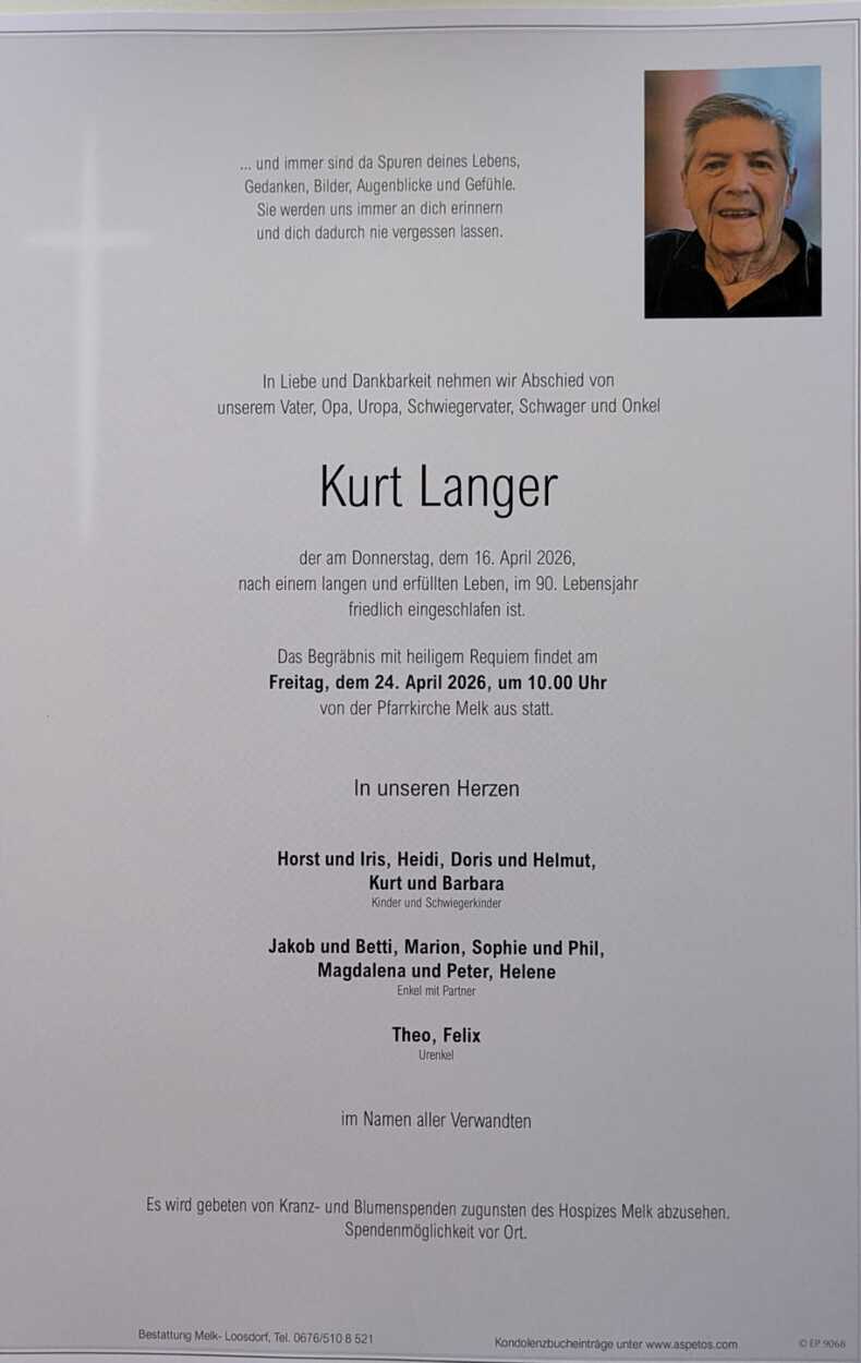 Der UTC Melk nimmt Abschied von Kurt Langer, der unser Vereinsleben über viele Jahre hinweg maßgeblich bereichert hat.